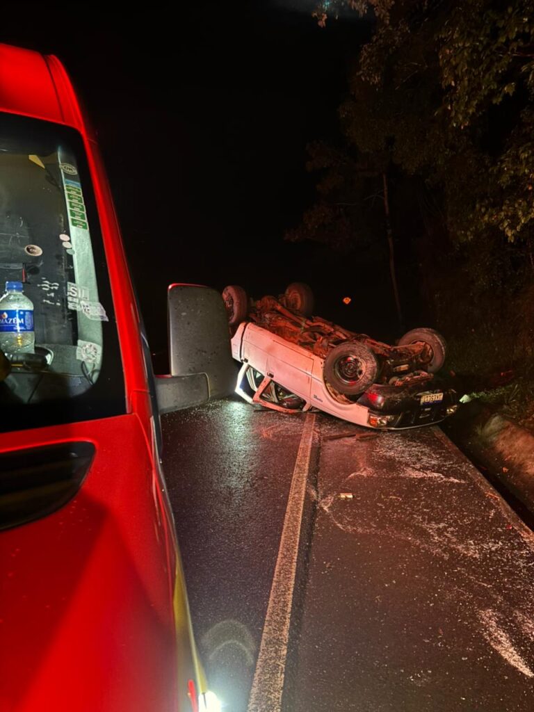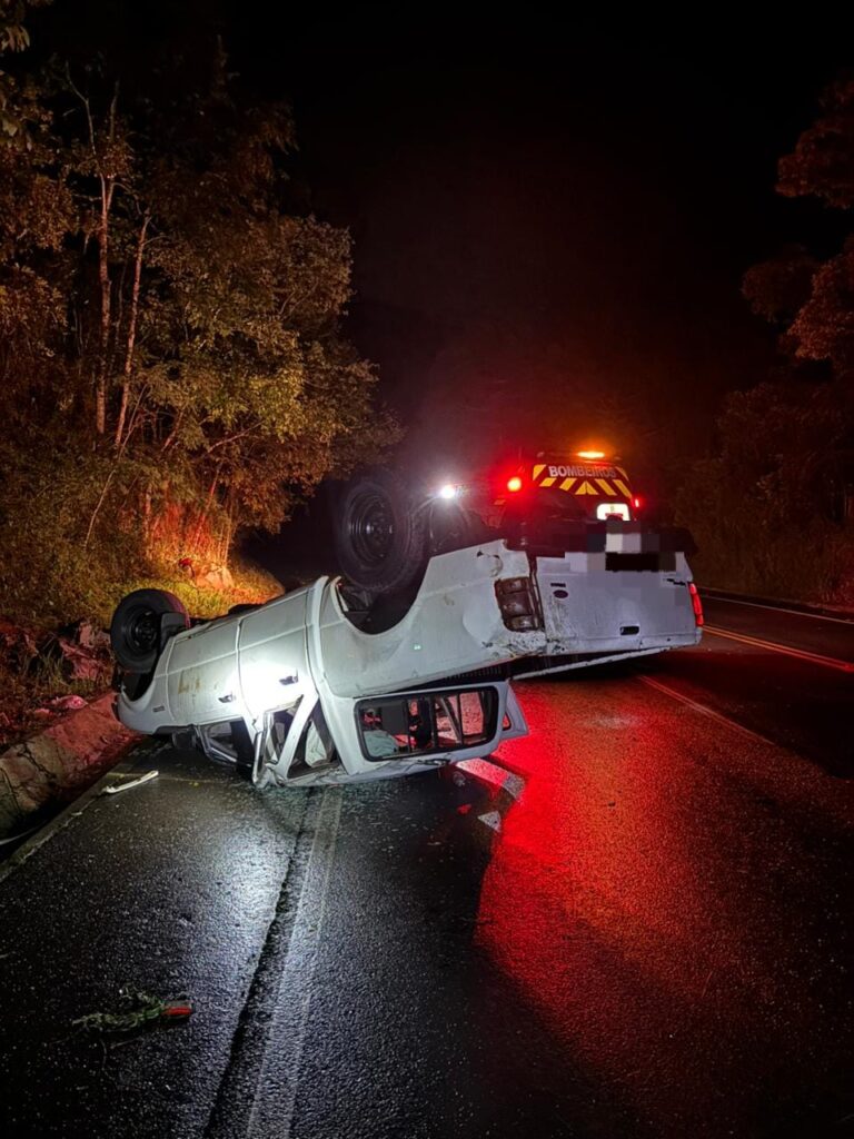 Os bombeiros realizaram a sinalização inicial da cena e iniciaram o atendimento pré-hospitalar ao motorista, que estava consciente, orientado e caminhando pelo local. Ele apresentava sinais vitais dentro da normalidade e escoriações em ambas as mãos.