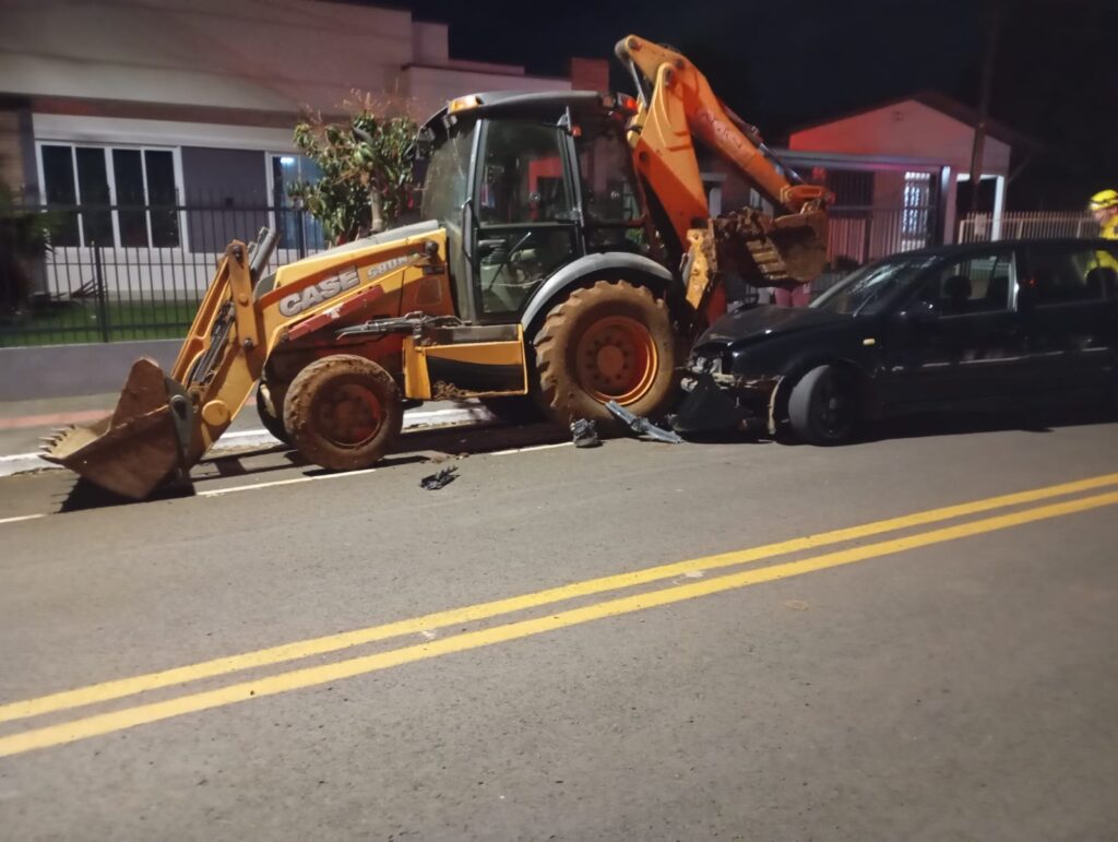 Um motorista de 27 anos ficou ferido após colidir o carro que conduzia, um VW Golf com placas Mercosul, contra uma retroescavadeira estacionada no acostamento da Rua Victor Meireles, bairro Cidade Alta, em Cunha Porã. O acidente foi registrado por volta de 00h27 desta quinta-feira (09).