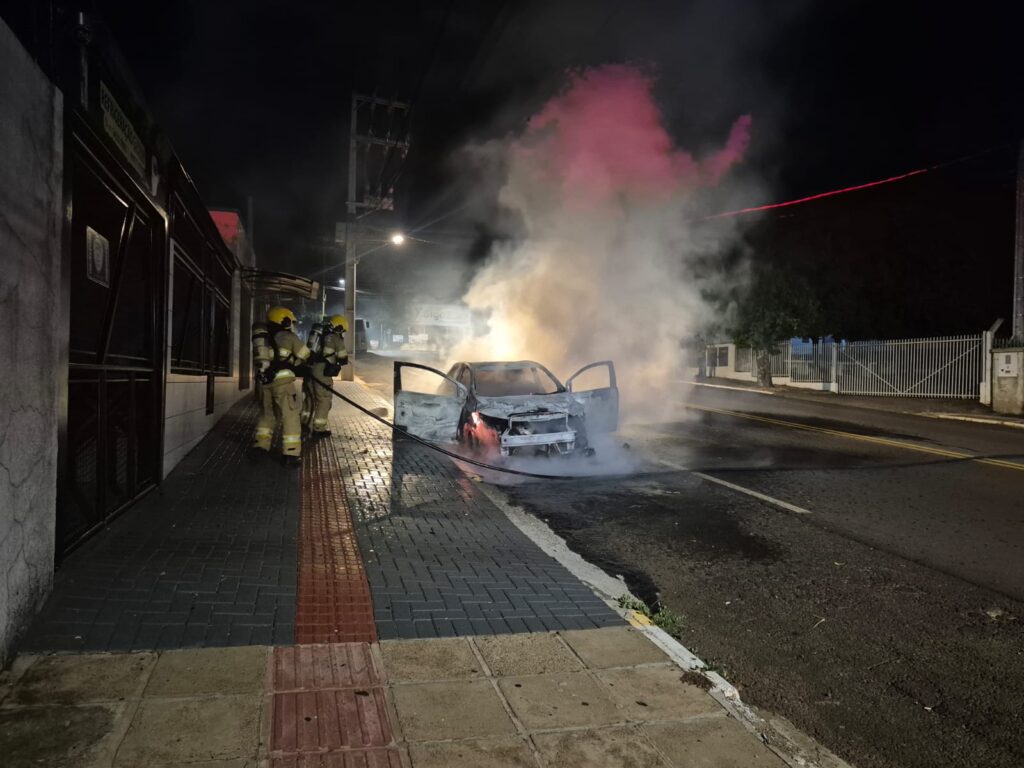 Um veículo de passeio foi completamente destruído por um incêndio na madrugada desta segunda-feira (9), por volta das 3h40, na Rua Emilio Allet, em Xanxerê, no Oeste de Santa Catarina. Apesar da gravidade da ocorrência, ninguém ficou ferido.