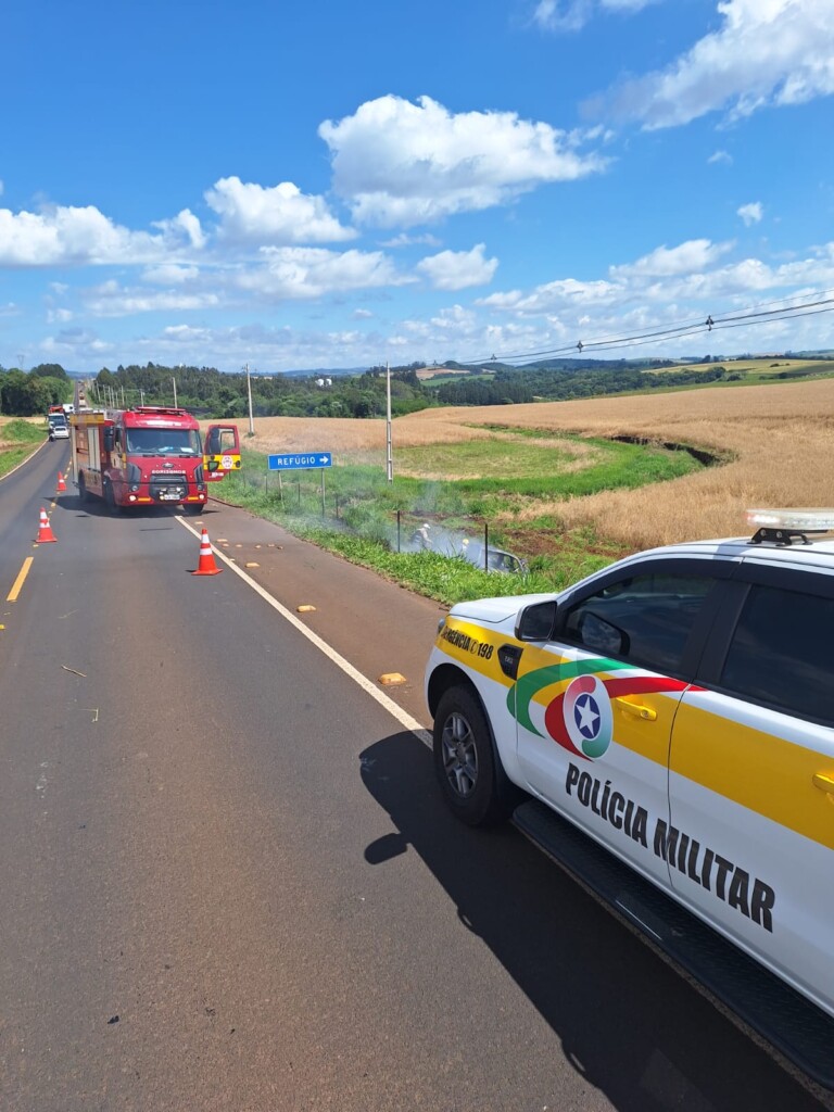 De acordo com informações da Polícia Militar Rodoviária (PMRv), o carro seguia normalmente pela via quando um dos pneus estourou, fazendo com que o motorista perdesse o controle da direção. O veículo saiu da pista, capotou e pegou fogo logo em seguida, ficando totalmente destruído pelas chamas.