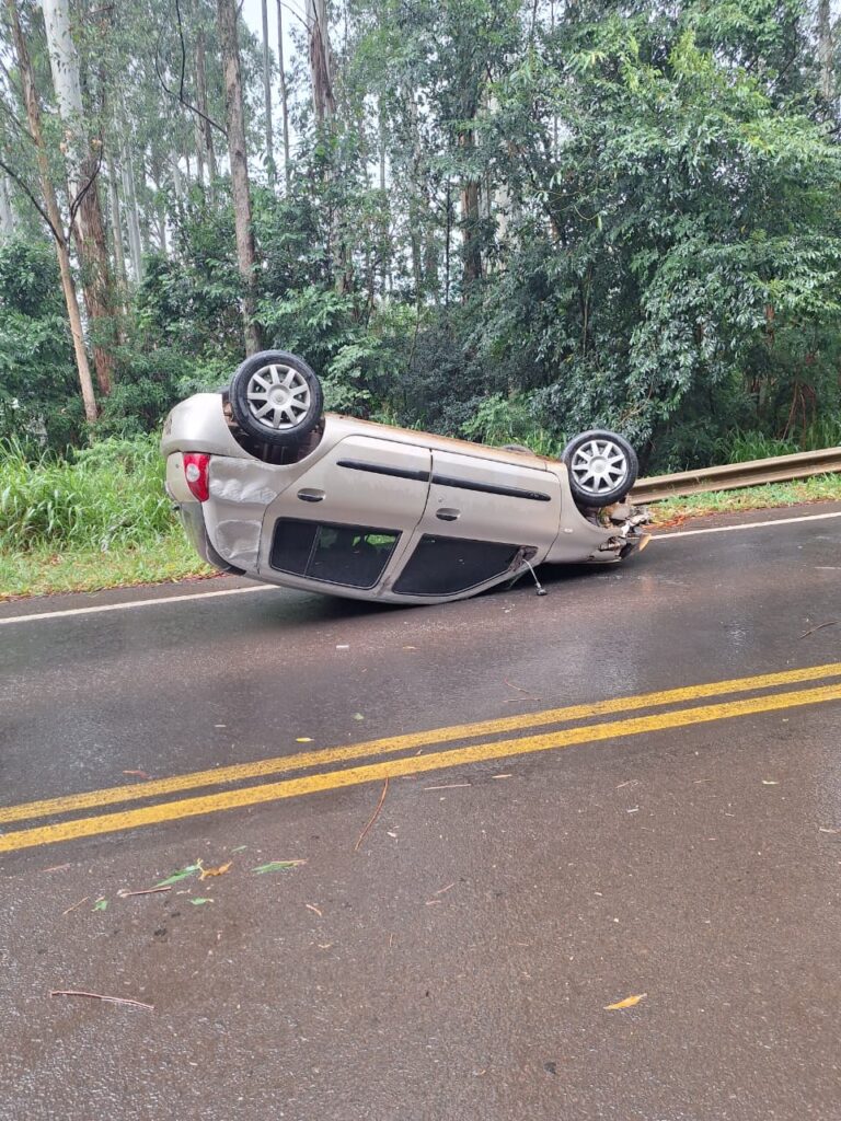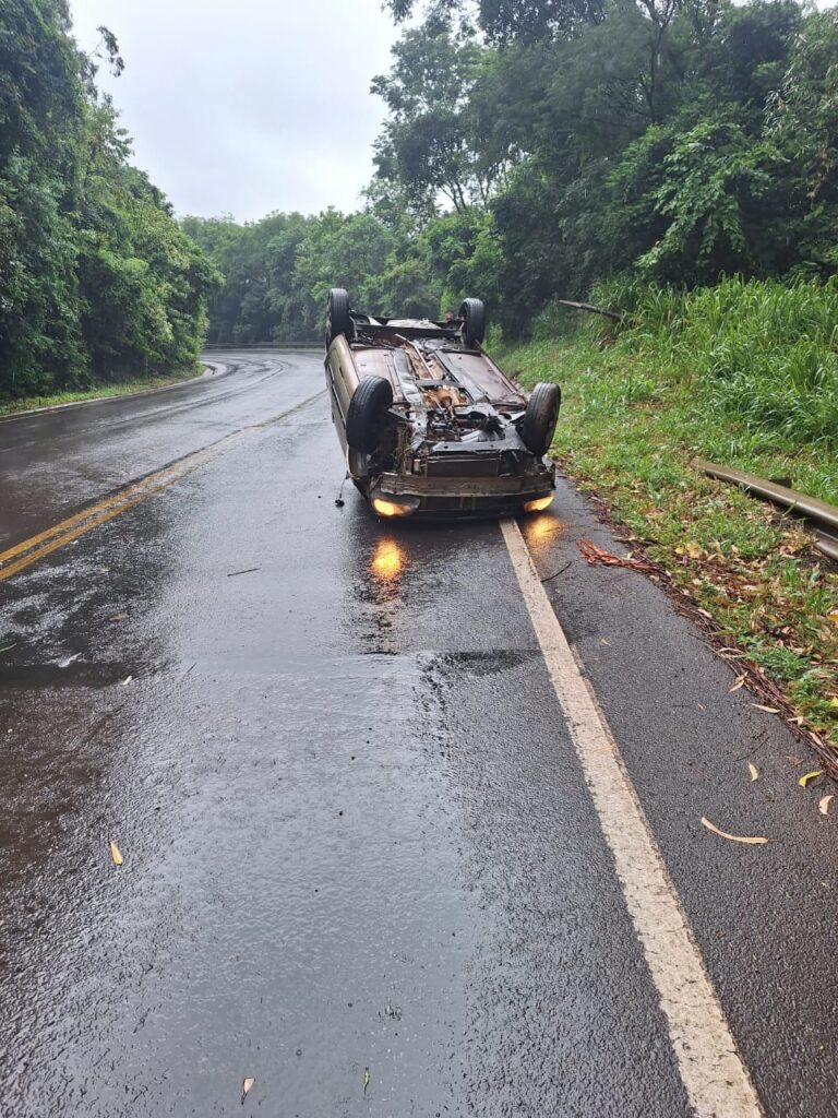 Um veículo capotou na tarde deste sábado (7) na rodovia SC-157, em Novo Horizonte, no Oeste de Santa Catarina. O acidente aconteceu por volta das 14h30, no km 17,300 da rodovia estadual, e apesar do impacto, os três ocupantes do automóvel não sofreram ferimentos.