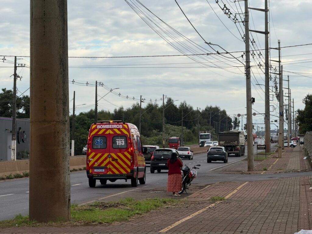 O motociclista também ficou ferido em decorrência da queda e aguardava atendimento. A ocorrência mobilizou equipes do Corpo de Bombeiros e da Polícia Militar.