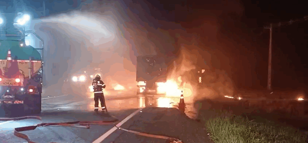 A PRF informou que a dinâmica exata da colisão só será confirmada após a conclusão do Laudo Pericial de Trânsito. A pista principal da BR-101, no sentido Norte, está totalmente bloqueada a partir do km 168, com desvio pela marginal. A fila já chega a 10 quilômetros. Equipes seguem trabalhando na liberação da rodovia.