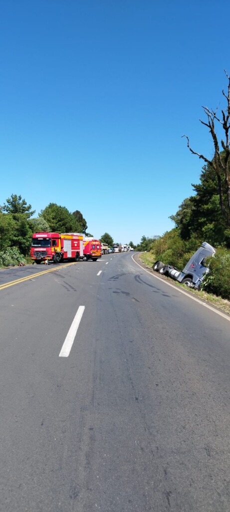 De acordo com o Corpo de Bombeiros Militar de Ponte Serrada, que atendeu a ocorrência com as viaturas ASU-508 e ABTR-88, a colisão fez com que ambos os caminhões saíssem da pista e caíssem em ribanceiras localizadas em lados opostos da rodovia.