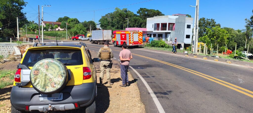 De acordo com o Corpo de Bombeiros Militar, a ocorrência foi registrada na Rodovia Claumir Luiz Trevisol e envolveu um carro VW/Fox e um caminhão.