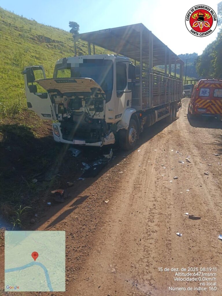 O condutor do caminhão, um homem de 49 anos, não sofreu ferimentos e dispensou atendimento no local. Após a conclusão dos trabalhos, a cena do acidente ficou sob responsabilidade da Polícia Militar de Santa Catarina, que realizará os procedimentos cabíveis.