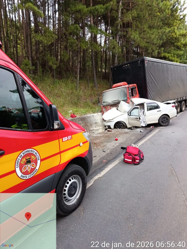 De acordo com informações do Corpo de Bombeiros Militar de Santa Cecília, a ocorrência foi registrada no trecho da rodovia no sentido Lebon Régis, nas proximidades da ponte da Vaili. No local, as equipes confirmaram uma colisão fronto-lateral direita entre os dois veículos.