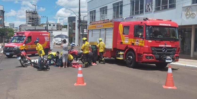 Uma colisão frontal lateral entre duas motocicletas deixou dois homens feridos no início da tarde desta segunda-feira (29), na Avenida La Salle, região central de Xanxerê, no Oeste de Santa Catarina. O acidente foi registrado por volta das 13h20 e mobilizou equipes do Corpo de Bombeiros Militar de Santa Catarina (CBMSC) e do Serviço de Atendimento Móvel de Urgência (SAMU).