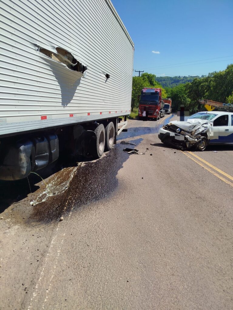 Dois ocupantes de uma picape ficaram feridos após uma colisão envolvendo um caminhão na manhã desta quinta-feira, na SC-492, no trecho entre Tigrinhos e Santa Terezinha do Progresso, no Oeste de Santa Catarina. O acidente foi registrado por volta das 09h25, mobilizando equipes do Corpo de Bombeiros Militar de Maravilha, SAMU e Polícia Militar.