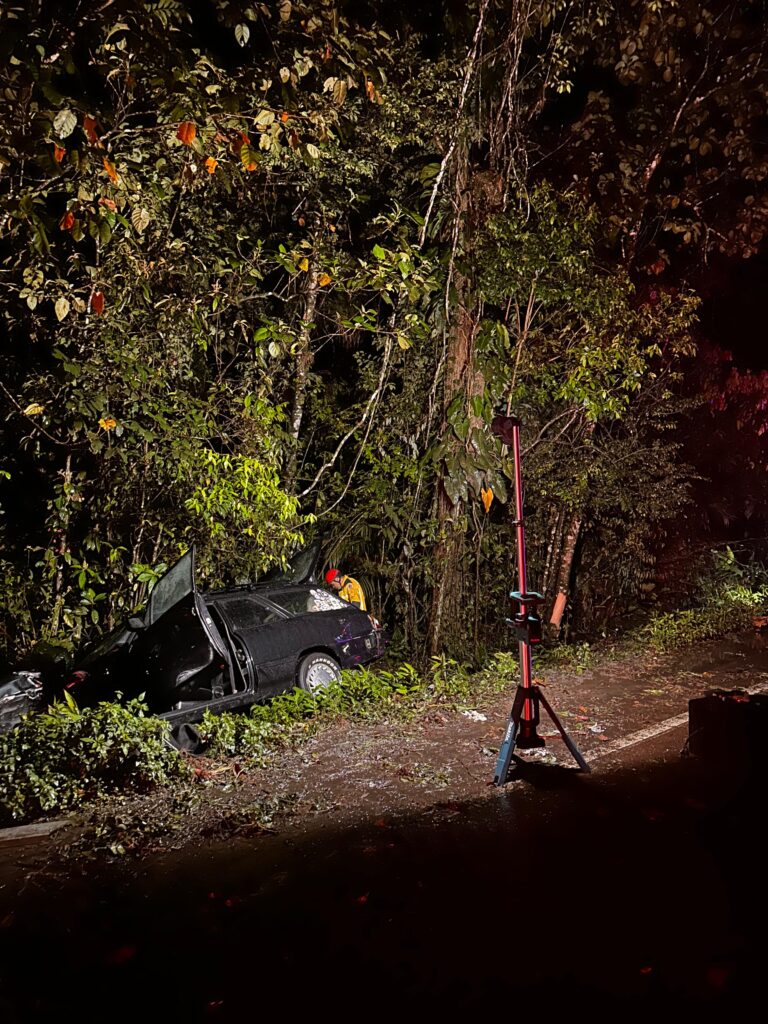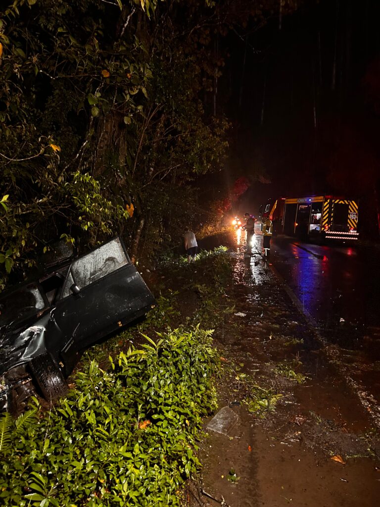 Duas pessoas ficaram feridas após um acidente de trânsito registrado na noite de sábado (22) na SC-416, no bairro Mina Velha, em Garuva. O Corpo de Bombeiros Militar foi acionado por volta das 21h44 para atender a ocorrência, que envolveu a saída de pista e colisão de uma Caravan Comodoro, veículo de coleção, contra uma árvore.