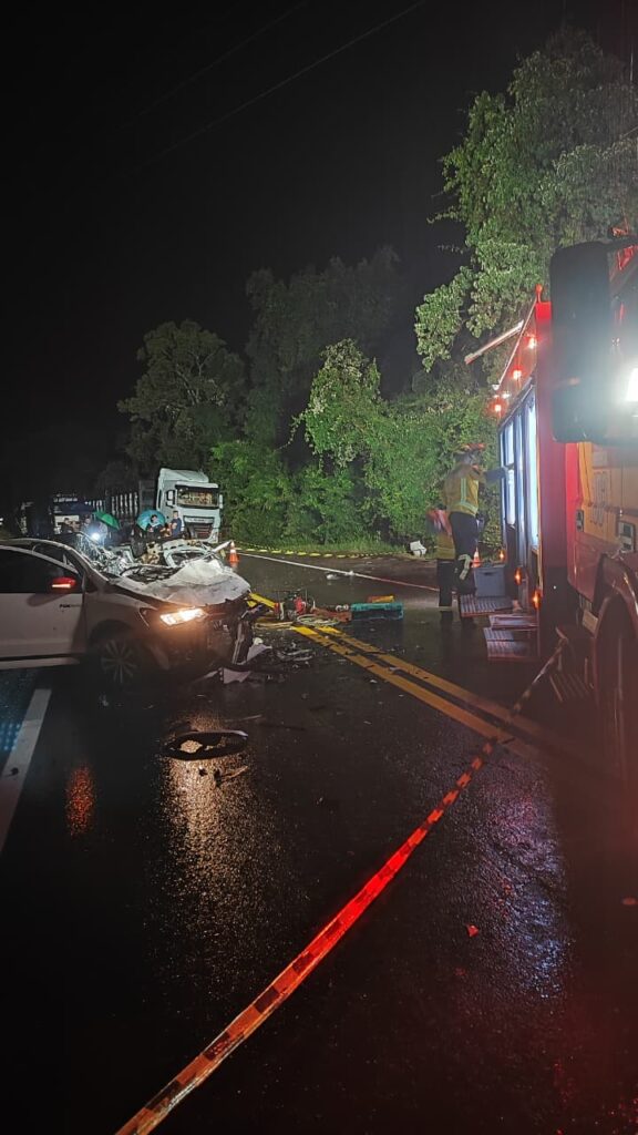 No Ford Ka, a condutora foi ejetada do veículo durante o impacto. Ela foi encontrada em decúbito ventral, em óbito, sob o teto do carro, que se desprendeu com a força da colisão.