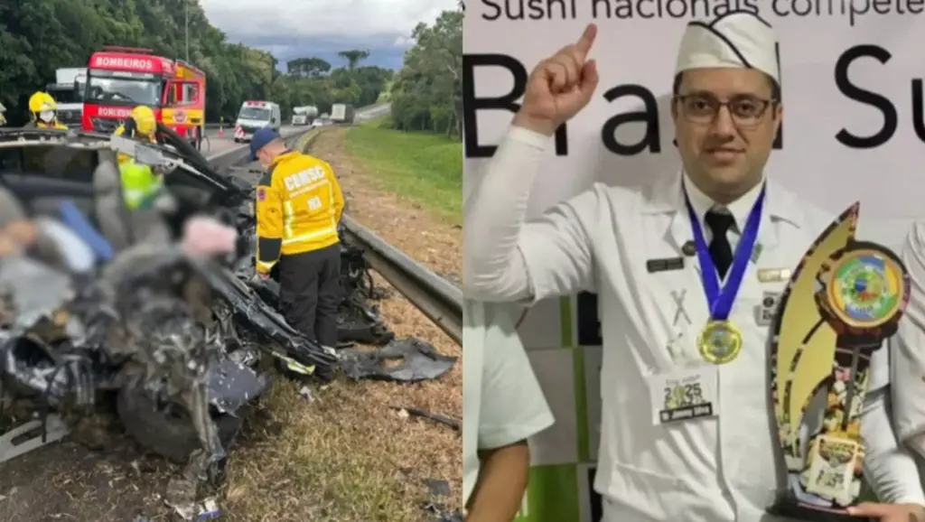 O empresário e chef Jimmy Emerson da Silva, de 39 anos, morreu na tarde de segunda-feira (24) após uma colisão frontal entre um carro e um caminhão na BR-116, em Papanduva, no Planalto Norte de Santa Catarina. O acidente ocorreu na localidade de Queimados, próximo ao acesso para Major Vieira.
