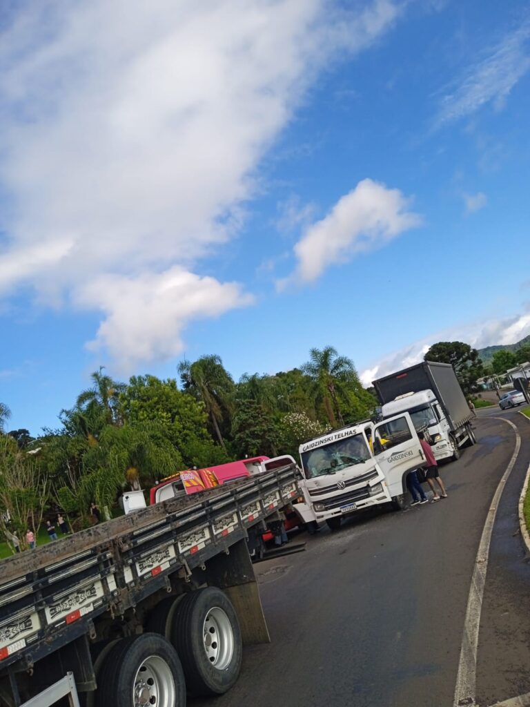 Engavetamento entre três caminhões deixa ferido na BR-282