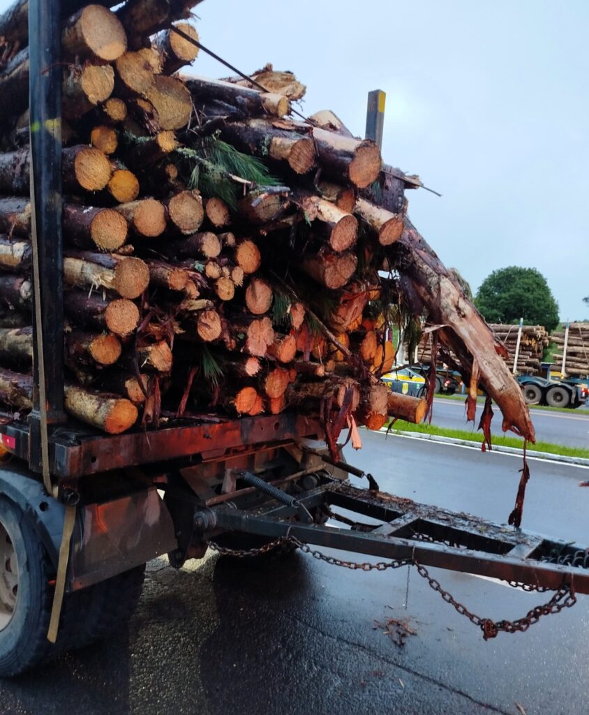 Durante a operação, foram abordados 57 veículos. Dois caminhões não apresentavam condições mínimas de segurança para circulação e foram recolhidos ao pátio. Um deles, que transportava toras de madeira, foi flagrado com a carga mal acondicionada, com pedaços caindo sobre a rodovia, colocando em risco outros motoristas.