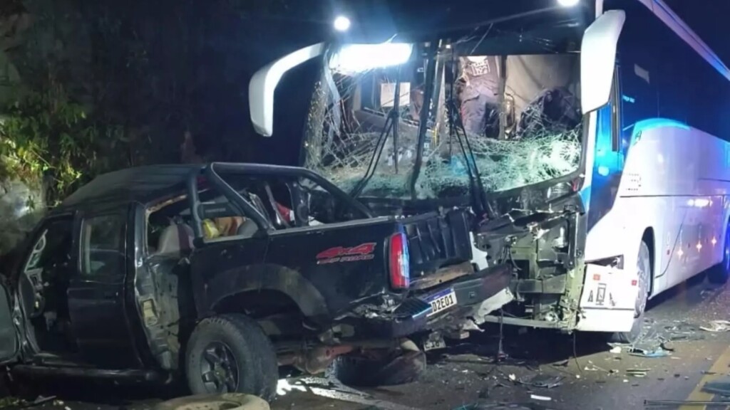 Grave acidente entre caminhonete e ônibus deixa dois mortos em SC