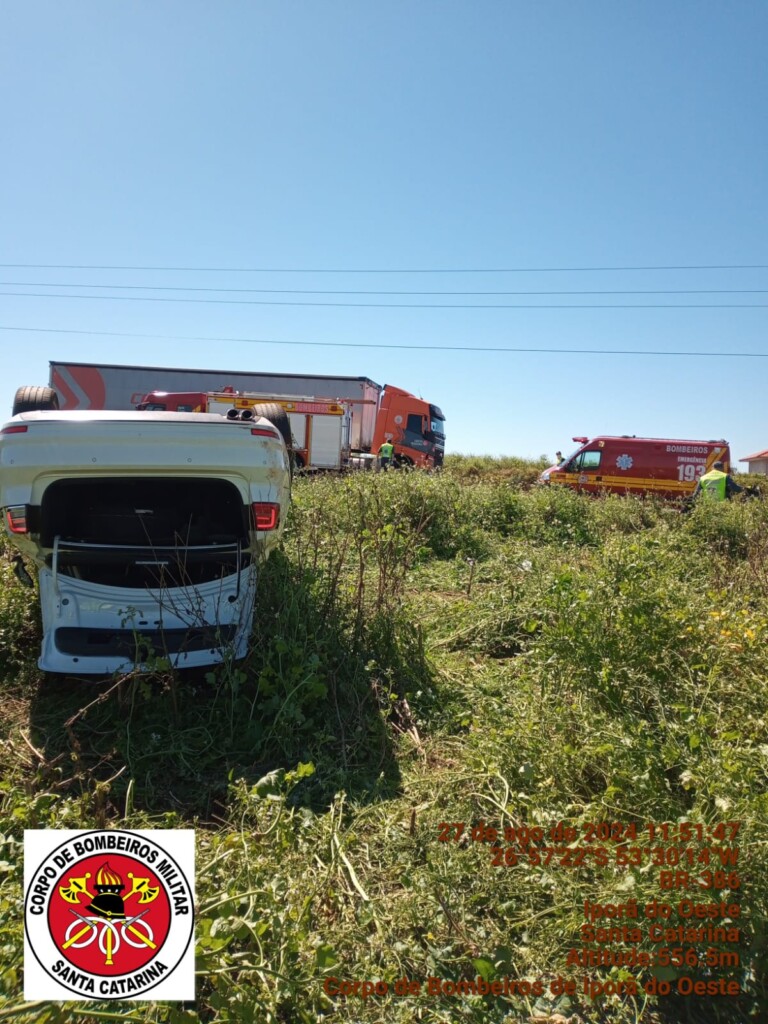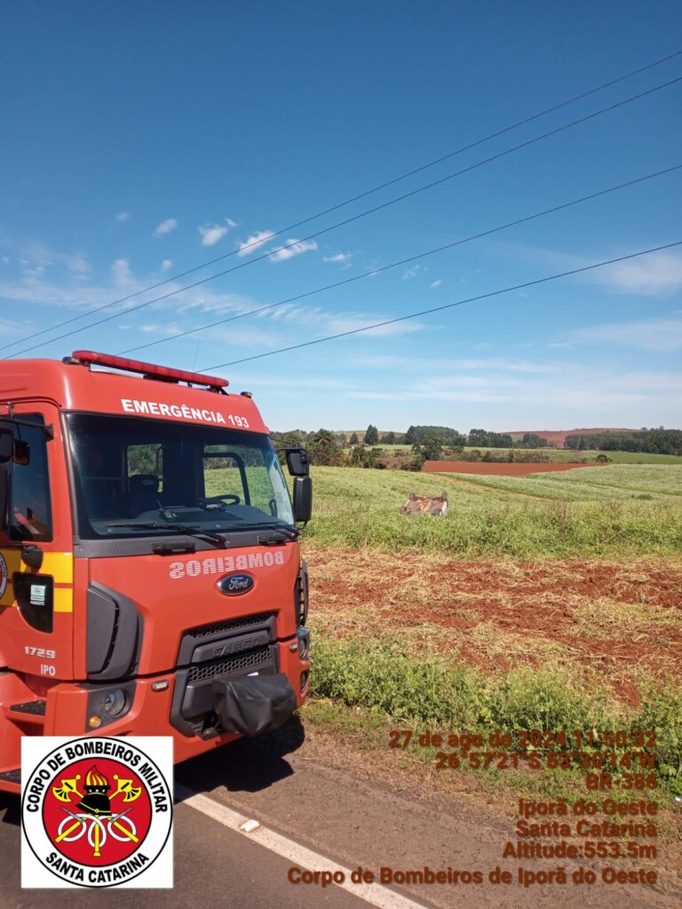 Na manha de terça-feira (27), por volta das 11h33min, a equipe do Corpo de Bombeiros de Iporã do Oeste foi acionada pelo COBOM do 6º Batalhão de Bombeiros Militar de Chapecó para atender a um acidente de trânsito, capotamento na SC-163, próximo à comunidade de Linha São Vendelino, no interior do município de Iporã do Oeste.