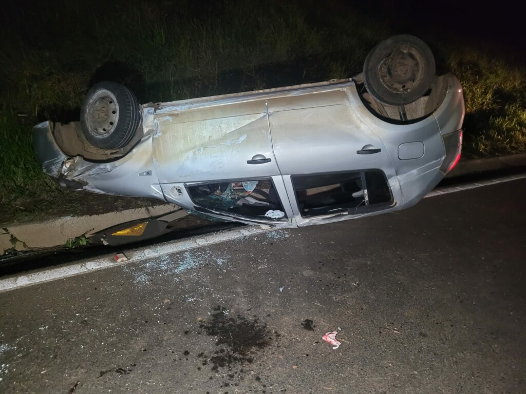 Um homem ficou ferido após carro sair de pista e capotar na BR-282, no bairro Industrial, no município de Xaxim (SC). Conforme informações do Corpo de Bombeiros, o fato correu por volta das 05h30 deste sábado (01).