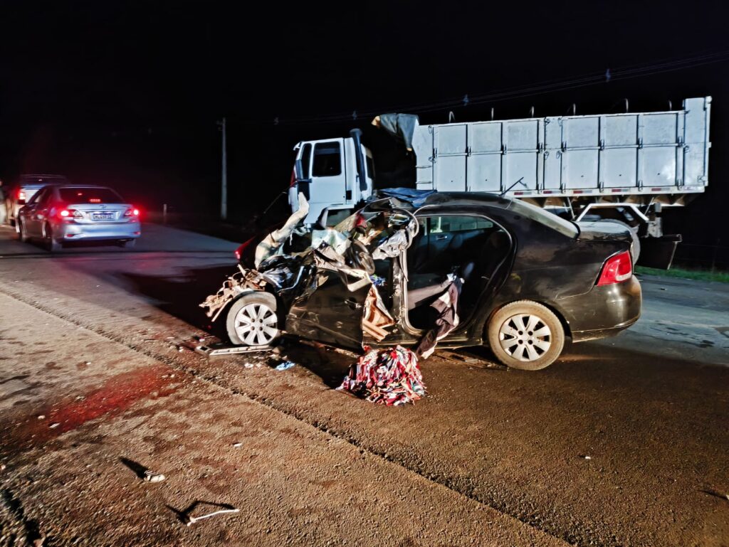 Na ocorrência, também foram atendidas a esposa da vítima e outra ocupante do carro, além do motorista do caminhão. O estado de saúde deles não foi detalhado.