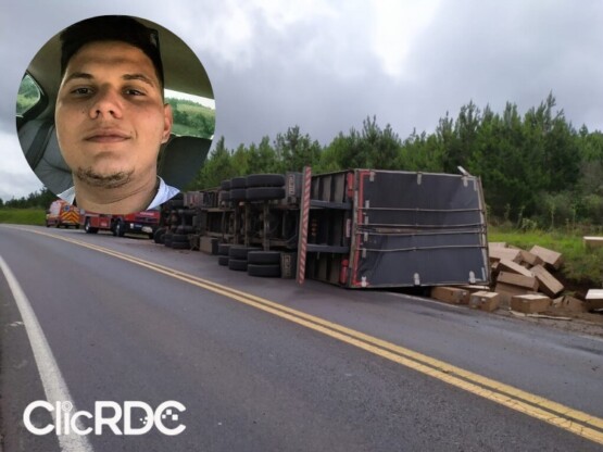 Um jovem de 25 anos morreu após o caminhão, com placa de Chapecó (SC), que conduzia, sair da pista e tombar na tarde desta quarta-feira (10), na BR-153, em Água Doce, no Oeste catarinense. A vítima, identificada como André Durel, era morador de Pinhalzinho e natural de Modelo.