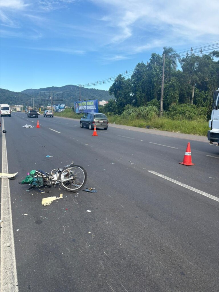 A Polícia Militar Rodoviária também atendeu a ocorrência e confirmou que se tratou de um sinistro de trânsito com vítima fatal. Conforme levantamento realizado no local, a van Mercedes-Benz 417 Sprinter transitava pela SC-486, no sentido Brusque–Itajaí, quando a bicicleta elétrica adentrou repentinamente na rodovia, cortando a trajetória do veículo e provocando a colisão transversal.