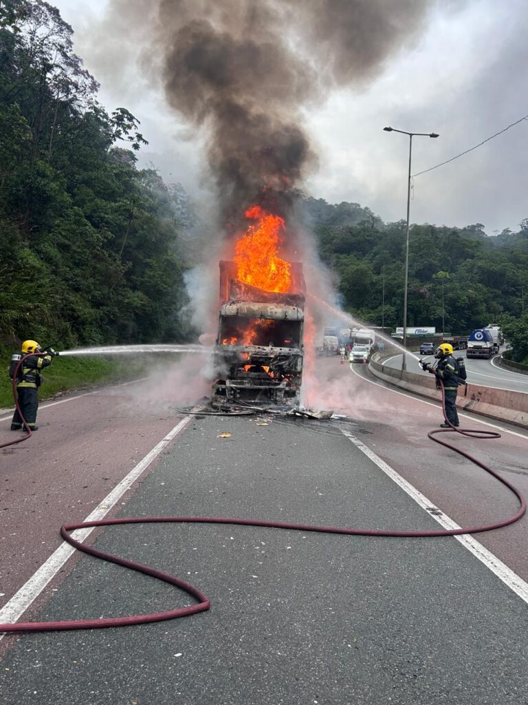 O motorista relatou aos bombeiros que descia a serra quando ouviu um forte estouro. Em seguida, o caminhão desligou e ele percebeu fumaça na parte inferior da cabine, conseguindo sair do veículo antes que o fogo se alastrasse. Apesar do susto, não houve registro de feridos.