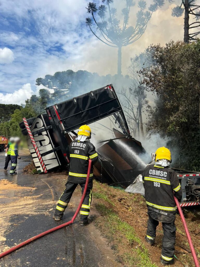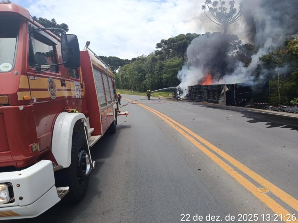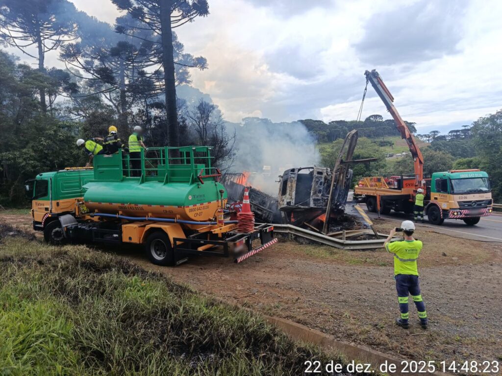 A Polícia Rodoviária Federal (PRF) e equipes da Autopista Planalto Sul prestaram apoio durante toda a operação. Após a extinção completa do fogo e finalização do rescaldo, o local foi deixado sob responsabilidade da concessionária da rodovia.