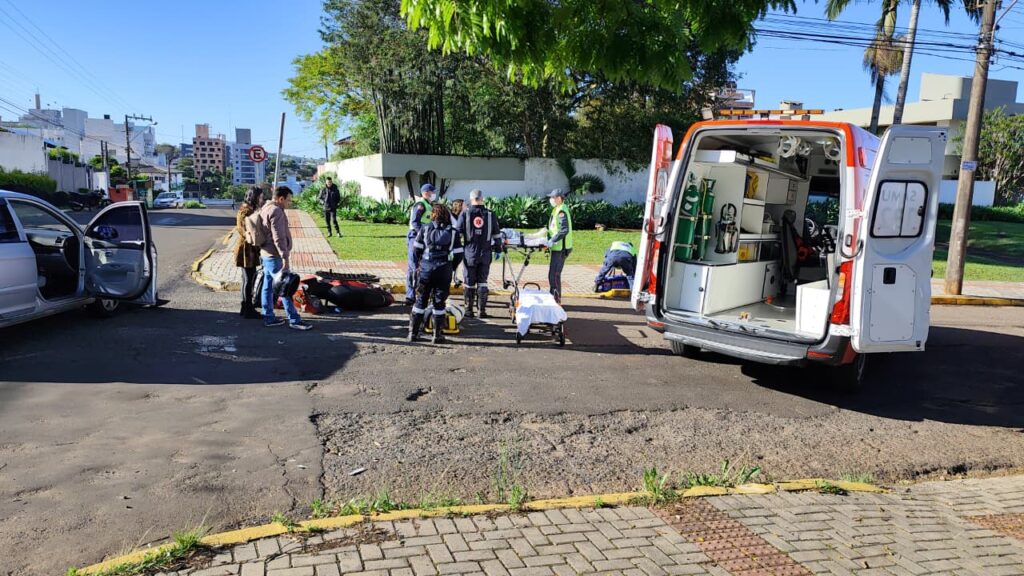 Duas mulheres, mãe e filha, ficaram feridas após uma colisão envolvendo uma Honda/Biz e um Kia/Picanto, registrada por volta das 7h40 desta segunda-feira (20), no cruzamento das ruas Clevelândia e Austrália, no Bairro Maria Goretti, em Chapecó.