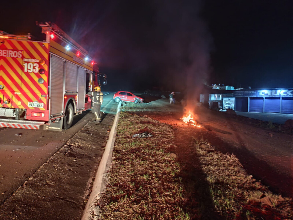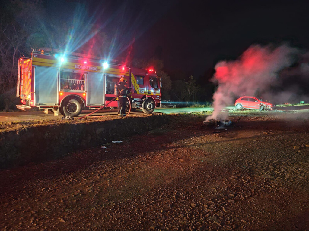Na noite da última sexta-feira (1º), uma motocicleta pegou fogo após colidir contra um automóvel VW Gol na marginal da BR-282, em Chapecó, no Oeste de Santa Catarina. O Corpo de Bombeiros Militar foi acionado por volta das 21h14 para combater as chamas e prestar socorro às vítimas.
