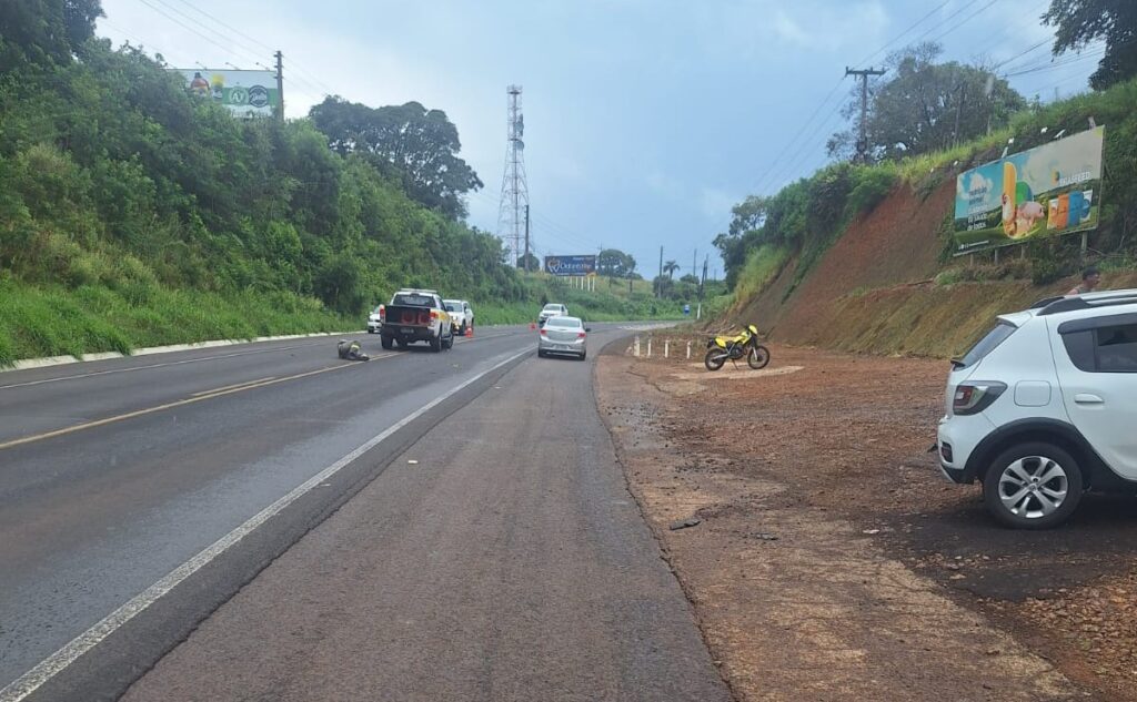 De acordo com a PMRv, o sinistro envolveu um Renault Sandero, com placas de Xanxerê, conduzido por um homem de 59 anos, que não sofreu ferimentos, e uma motocicleta Honda XR 250 Tornado, com placas de Faxinalzinho (RS), conduzida por um homem de 33 anos, que ficou lesionado.