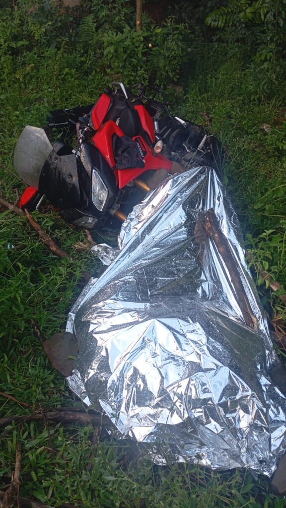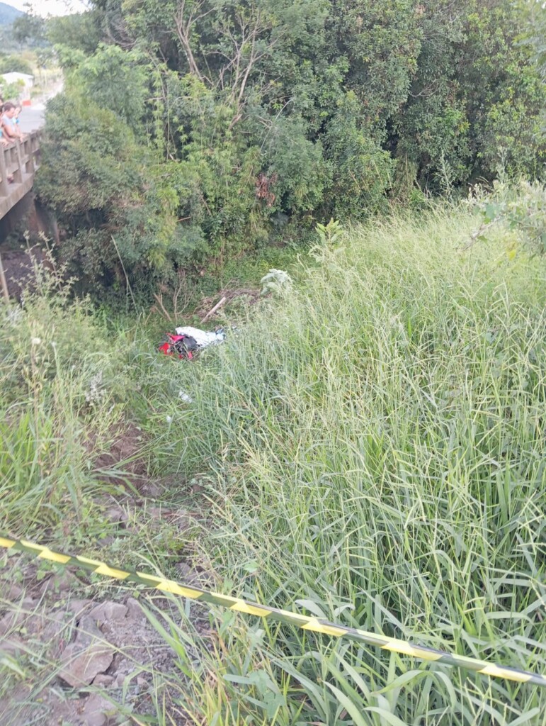 A motocicleta, uma Yamaha MT-09 Tracker, com placas de Iporã do Oeste, ficou caída em uma ribanceira às margens da rodovia, na lateral de uma ponte. Após o isolamento e a sinalização da área, os bombeiros aguardaram a chegada da Polícia Militar Rodoviária, que assumiu a ocorrência.