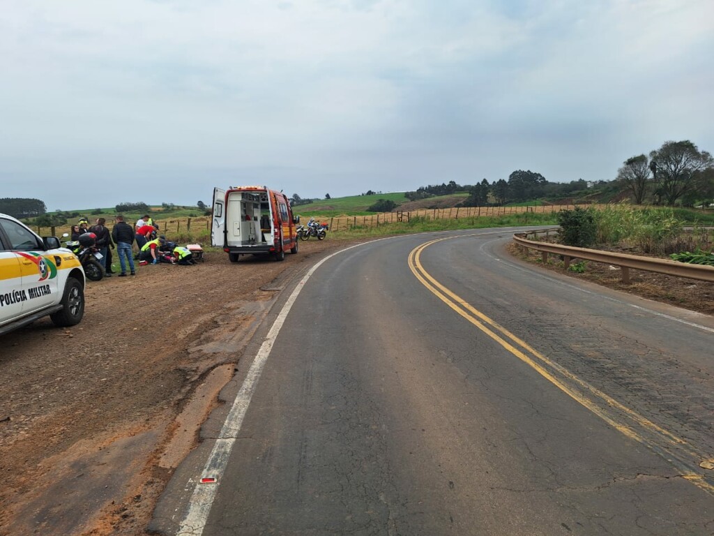 Uma mulher de 22 anos que estava na carona da moto, sofreu lesões leves e foi encaminhada ao Hospital Municipal de Iporã pelo Corpo de Bombeiros.