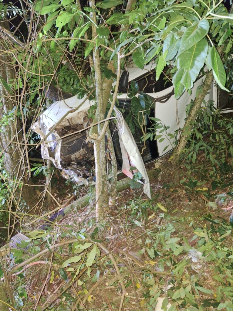 No local, as equipes confirmaram que um automóvel havia despencado cerca de 40 metros da rodovia, parando lateralizado e apoiado em árvores em uma área de difícil acesso. O condutor, um jovem de 21 anos, já havia conseguido deixar o veículo e estava sendo atendido pela guarnição do ASU-518.