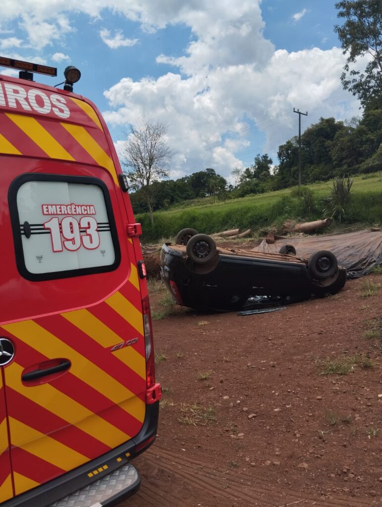 Um capotamento mobilizou o Corpo de Bombeiros Militar no início da tarde desta quarta-feira (26), na SC-160, na entrada para Cunhataí, em São Carlos, no Oeste de Santa Catarina. O acidente ocorreu por volta das 12h41.