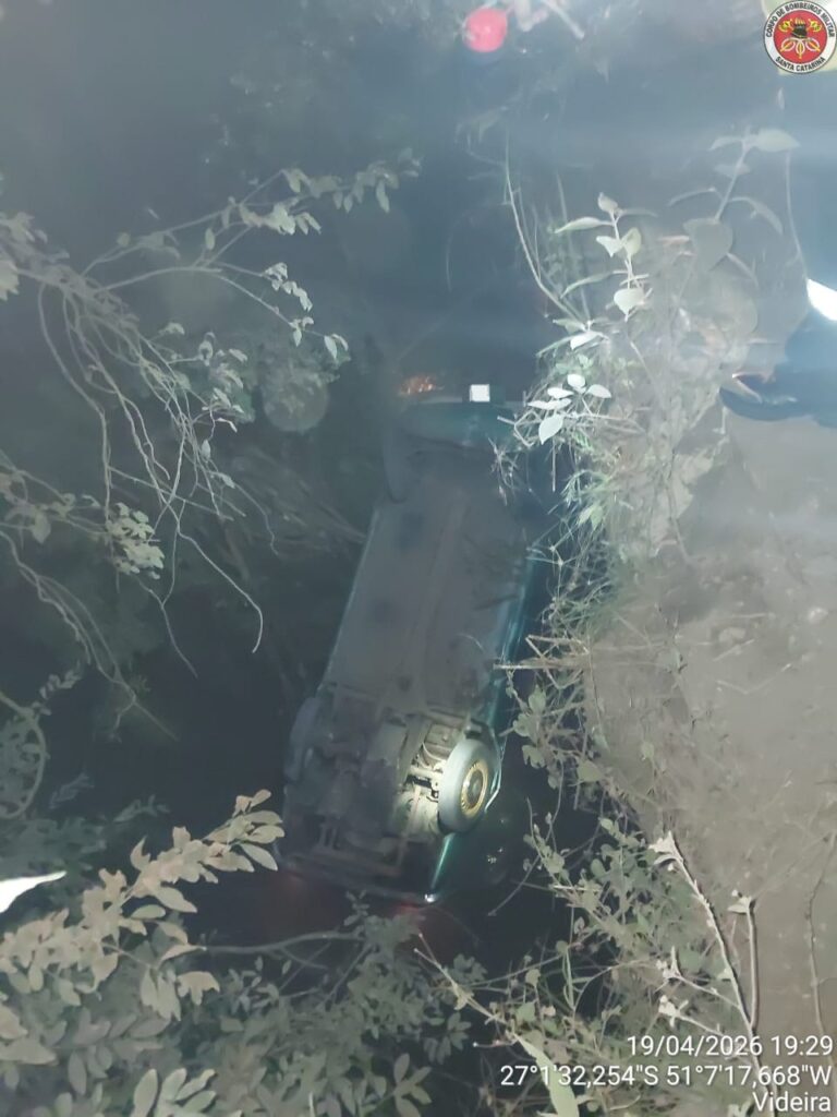 Um homem de 37 anos ficou ferido após sair da pista, cair de uma ponte e capotar o veículo na noite deste domingo (19), no interior de Videira, em Santa Catarina.