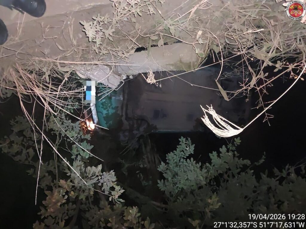 No local, os socorristas confirmaram que o veículo saiu da pista, caiu de uma ponte com cerca de três metros de altura e, na sequência, capotou, parando entre o rio e o barranco.