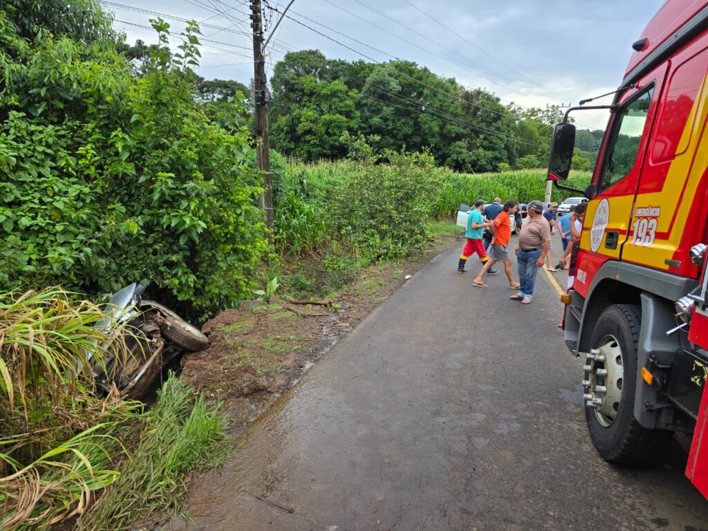 De acordo com o 14º Batalhão de Bombeiros Militar, a ocorrência foi atendida por volta das 17h35 pelas guarnições de Xaxim, com o emprego das viaturas ABTR-52 e ASU-485. Ao chegar ao local, os bombeiros encontraram o automóvel lateralizado sobre um córrego, após sair da pista e capotar.