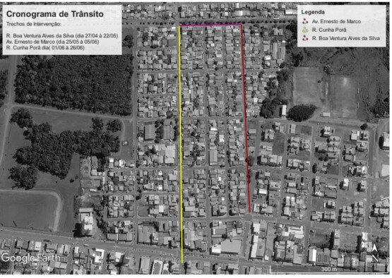 Na sequência, a partir do dia 22 de maio, as obras avançam para a avenida Ernesto de Marco (Araras), com previsão de continuidade até o dia 5 de junho. Já entre os dias 1º e 26 de junho, os serviços serão realizados na rua Cunha Porã.