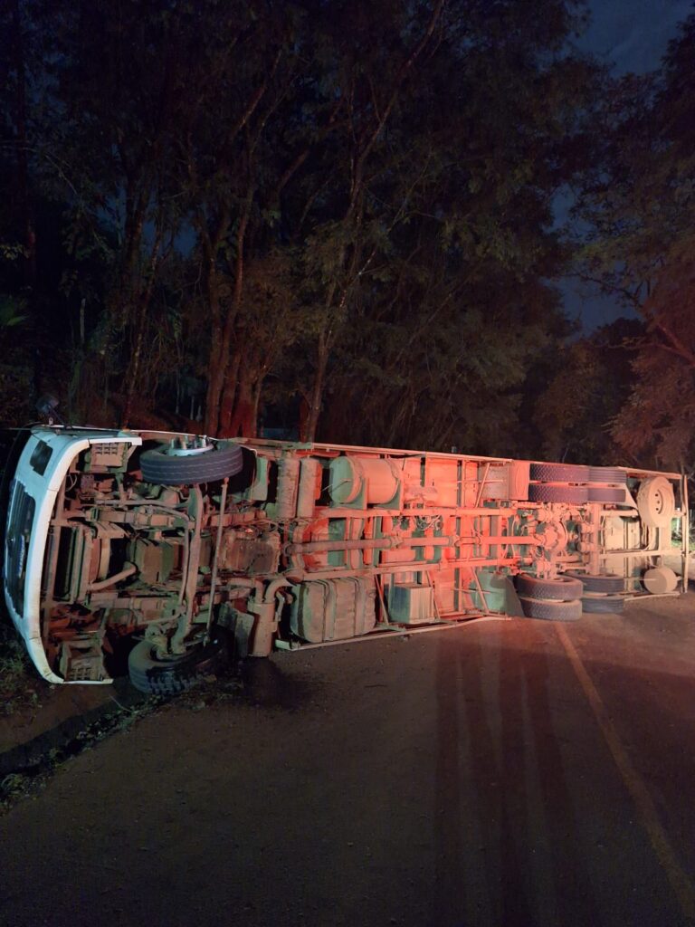 Conforme análise preliminar e relato do condutor, o tombamento teria ocorrido após o caminhão entrar na curva em velocidade acima do adequado. O veículo teria pendido lateralmente, fazendo com que o motorista perdesse o controle da direção.