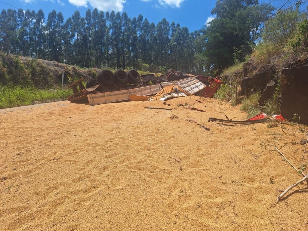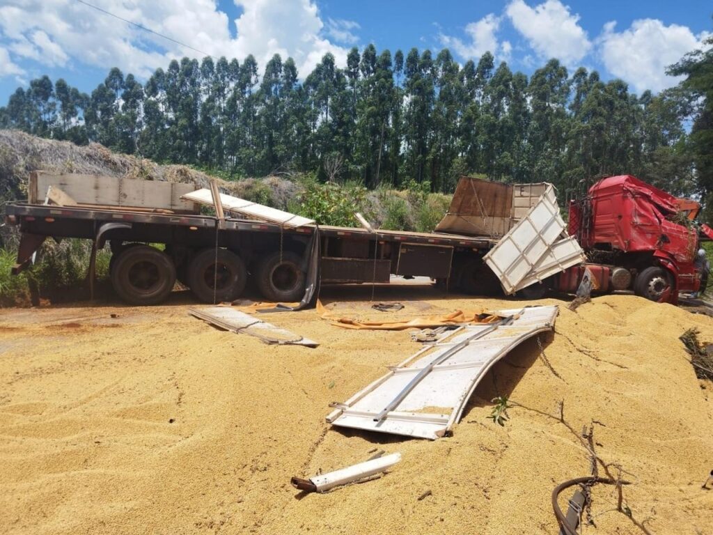 De acordo com a Polícia Militar Rodoviária, o sinistro envolveu uma carreta Scania R340, com placas do Paraguai, que tombou às margens da pista. O motorista sofreu ferimentos leves e foi atendido no local. O veículo teve danos de média monta.
