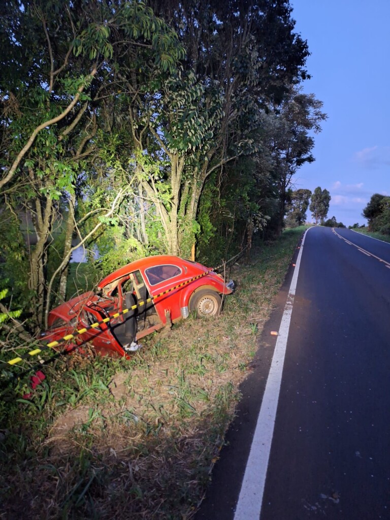 Um motorista ficou gravemente ferido após um acidente de trânsito na SC-161, em Anchieta, no início da noite deste sábado (6). O sinistro ocorreu por volta das 18h30 no km 34,750 da rodovia e envolveu apenas um veículo VW/Fusca 1500, que saiu da pista e colidiu contra uma árvore.