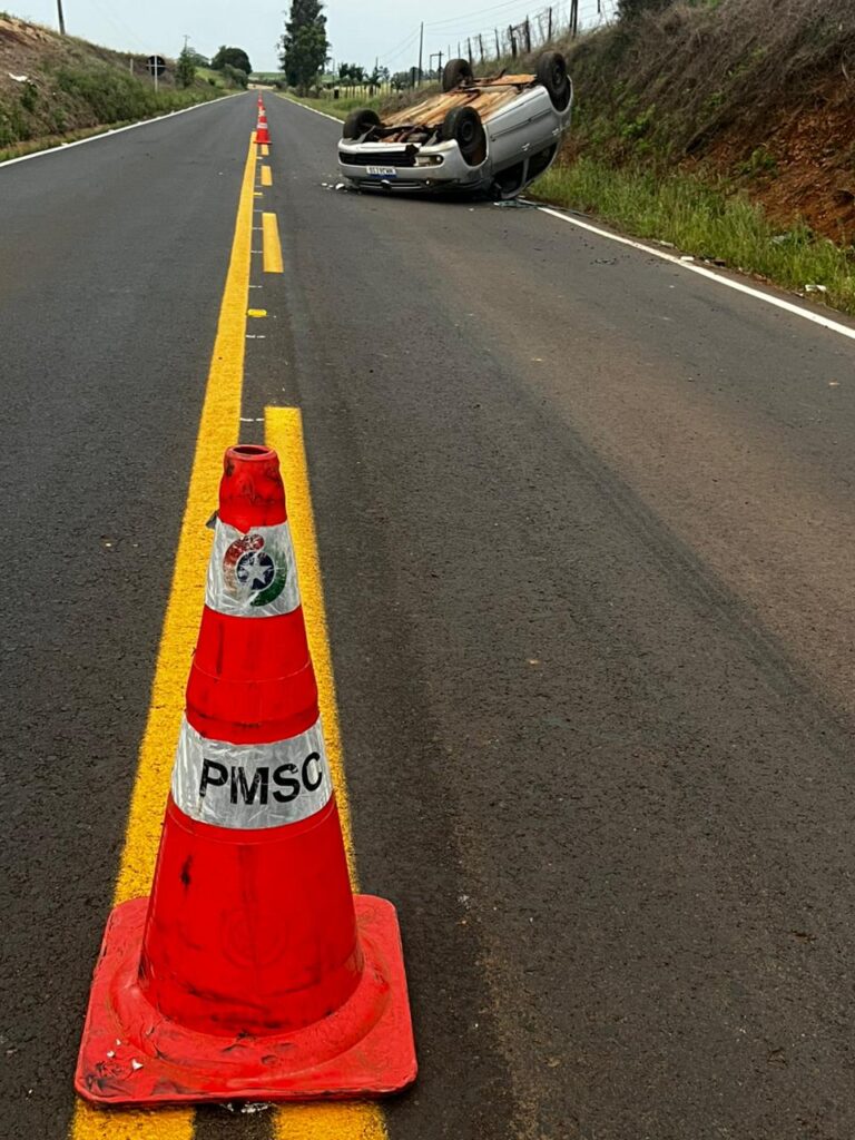 De acordo com a Polícia Militar Rodoviária (PMRv), o acidente envolveu um VW Gol com placas de São Miguel do Oeste, que saiu da pista e capotou após uma curva fechada. No veículo estavam quatro pessoas — a condutora, uma mulher, e três passageiros do sexo masculino.