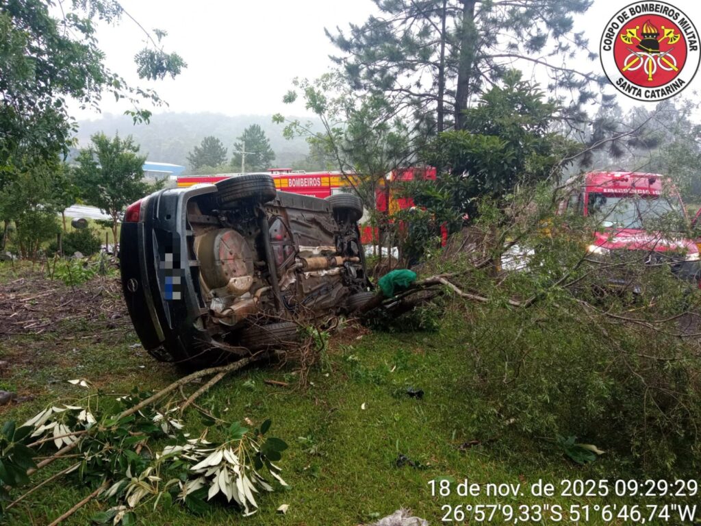 Motorista de 39 anos relatou apenas dor no ombro e dispensou atendimento após capotamento na SC-135