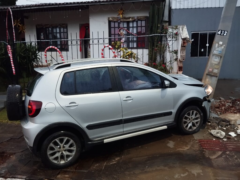 Um acidente de trânsito do tipo saída de pista seguida de colisão contra um poste de energia foi registrado no início da noite de segunda-feira (22), por volta das 18h51, no Centro de Saudades, no Oeste de Santa Catarina. A ocorrência foi atendida pelo 6º Batalhão de Bombeiros Militar, por meio da OBM de Saudades.