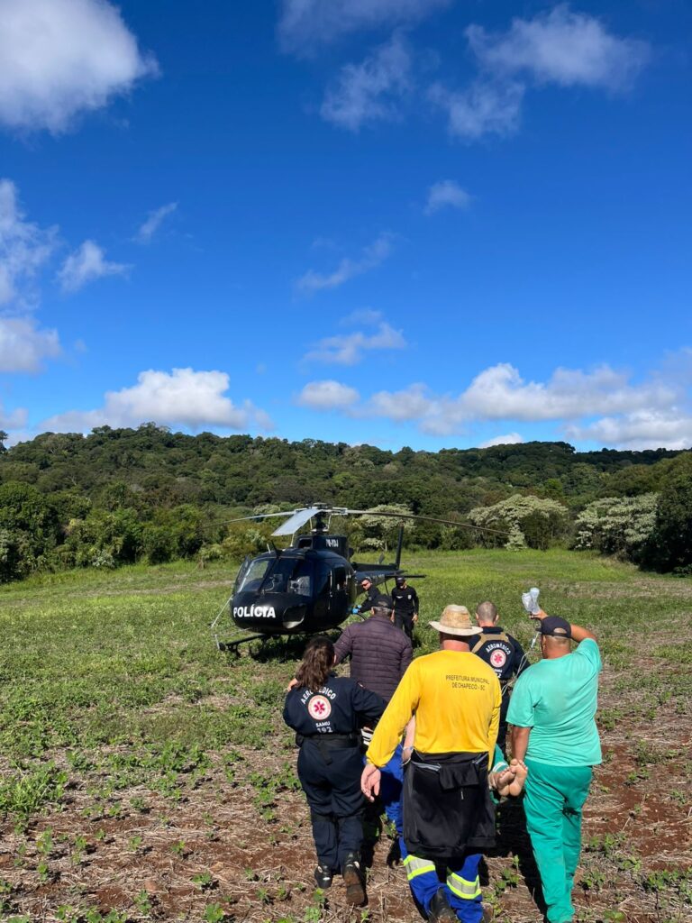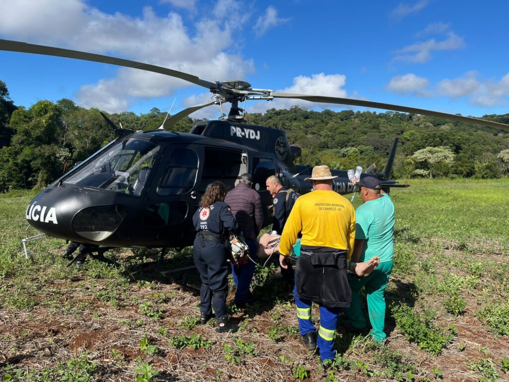 A vítima recebeu os primeiros atendimentos, foi estabilizada ainda no local e, em seguida, transportada de helicóptero até o Hospital Regional do Oeste para atendimento médico.