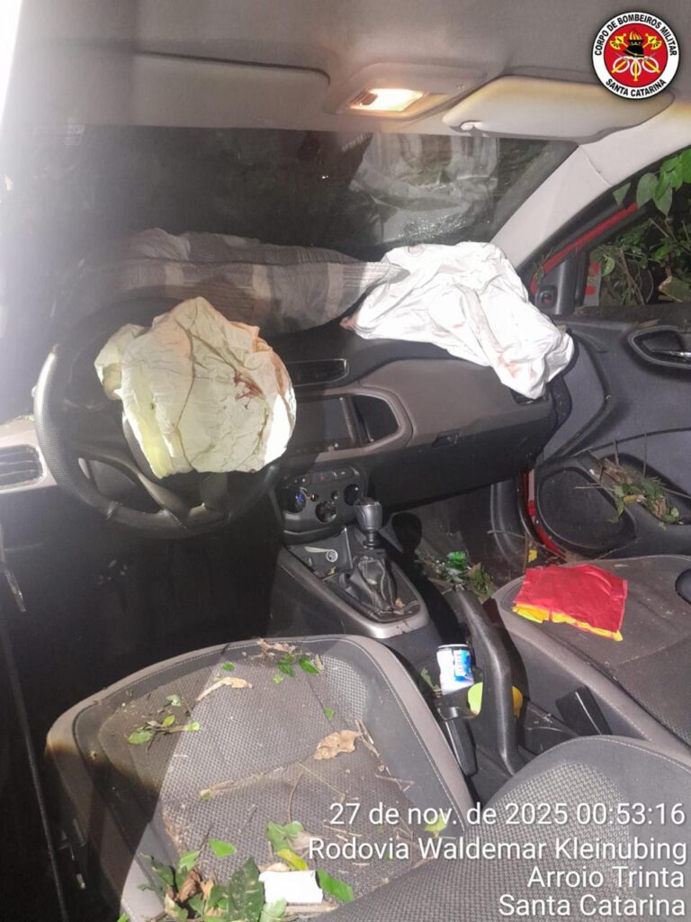 O passageiro dianteiro, de 42 anos, sofreu suspeita de fratura fechada na tíbia e fíbula da perna direita. Após avaliação e imobilização, foi conduzido pelo ASU-492 ao Hospital São Roque, em Arroio Trinta. A terceira vítima, um homem de 35 anos que deambulava pela cena, relatou dor no quadrante superior esquerdo e também foi levada ao mesmo hospital.
