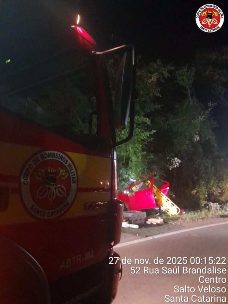 O Corpo de Bombeiros Militar de Salto Veloso foi acionado por volta das 23h31. Ao chegar ao local, a equipe confirmou a ocorrência e realizou o gerenciamento da cena, além de acionar o SAMU de Iomerê e a ambulância de Videira para apoio. Dentro do veículo estavam duas das três vítimas.