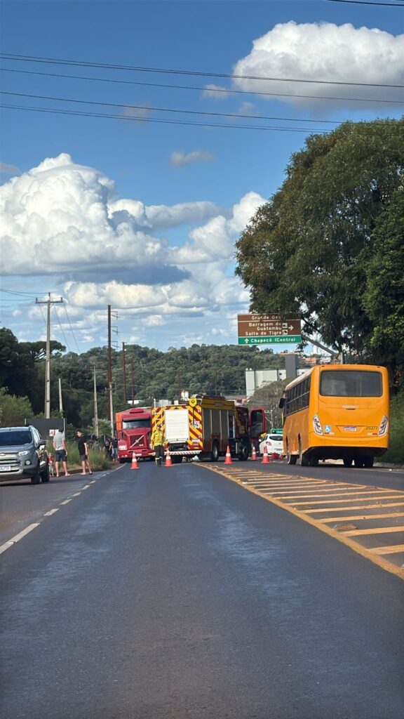 Um grave acidente de trânsito foi registrado por volta das 15h40 desta segunda-feira (13) no bairro Efapi, em Chapecó. A ocorrência envolve um ônibus de transporte coletivo e já há confirmação de uma vítima fatal.