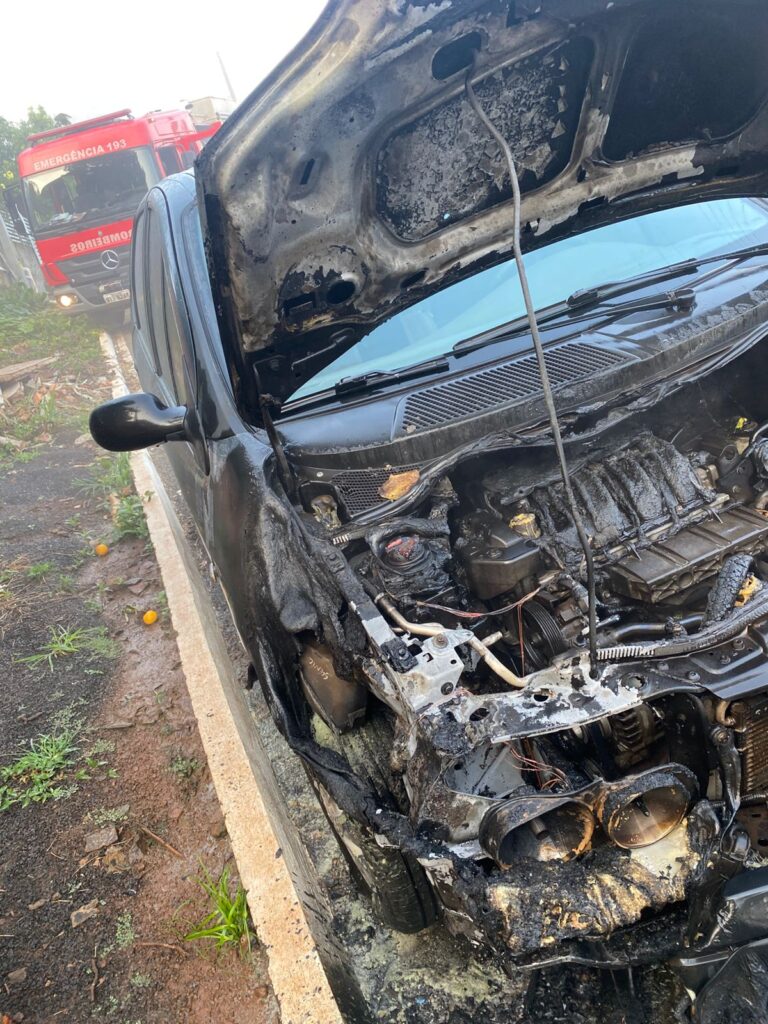 No local, a guarnição encontrou um automóvel Renault/Scenic estacionado às margens da rodovia, com emissão de fumaça no compartimento do motor. Populares que passavam pela via tentavam conter o princípio de incêndio utilizando mangueiras de jardim.