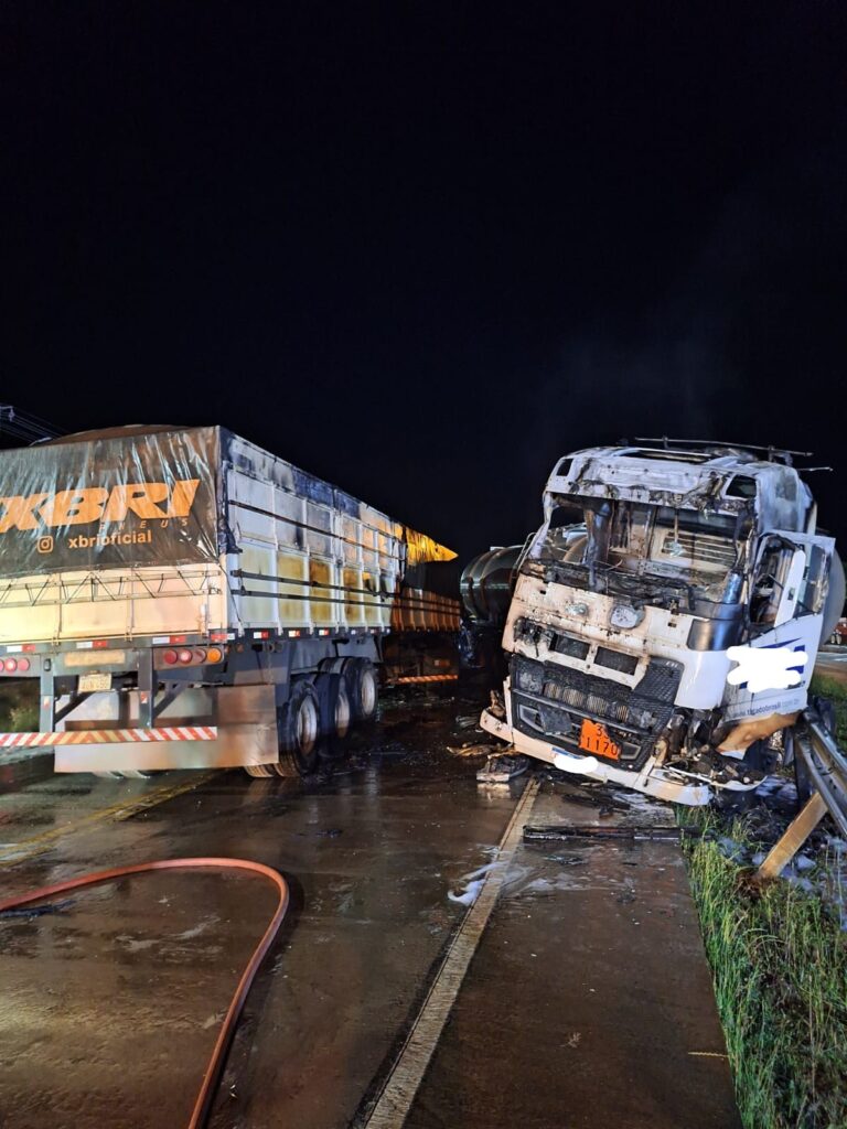 O motorista da carreta incendiada conseguiu sair do veículo por conta própria e recusou atendimento médico no local.