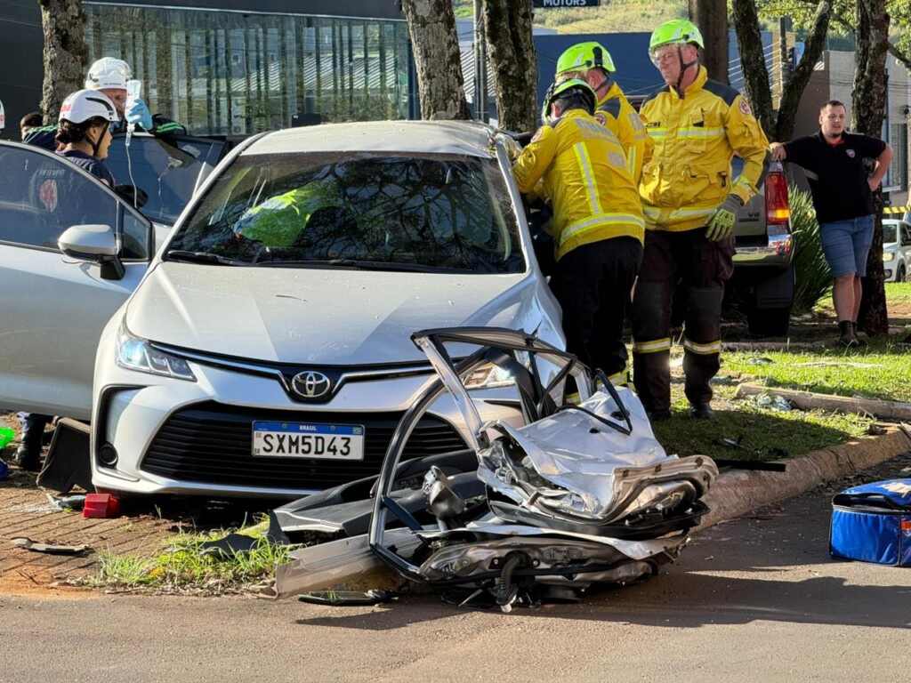 De acordo com as informações apuradas no local, a Amarok seguia pela Avenida Getúlio Vargas, no sentido Centro–bairro, quando o veículo de passeio tentou acessar a via pela Rua Venezuela. Houve a colisão na esquina e, com o impacto, o carro menor foi arrastado, rodopiou na pista e acabou colidindo com a parte traseira contra uma árvore localizada no canteiro central.
